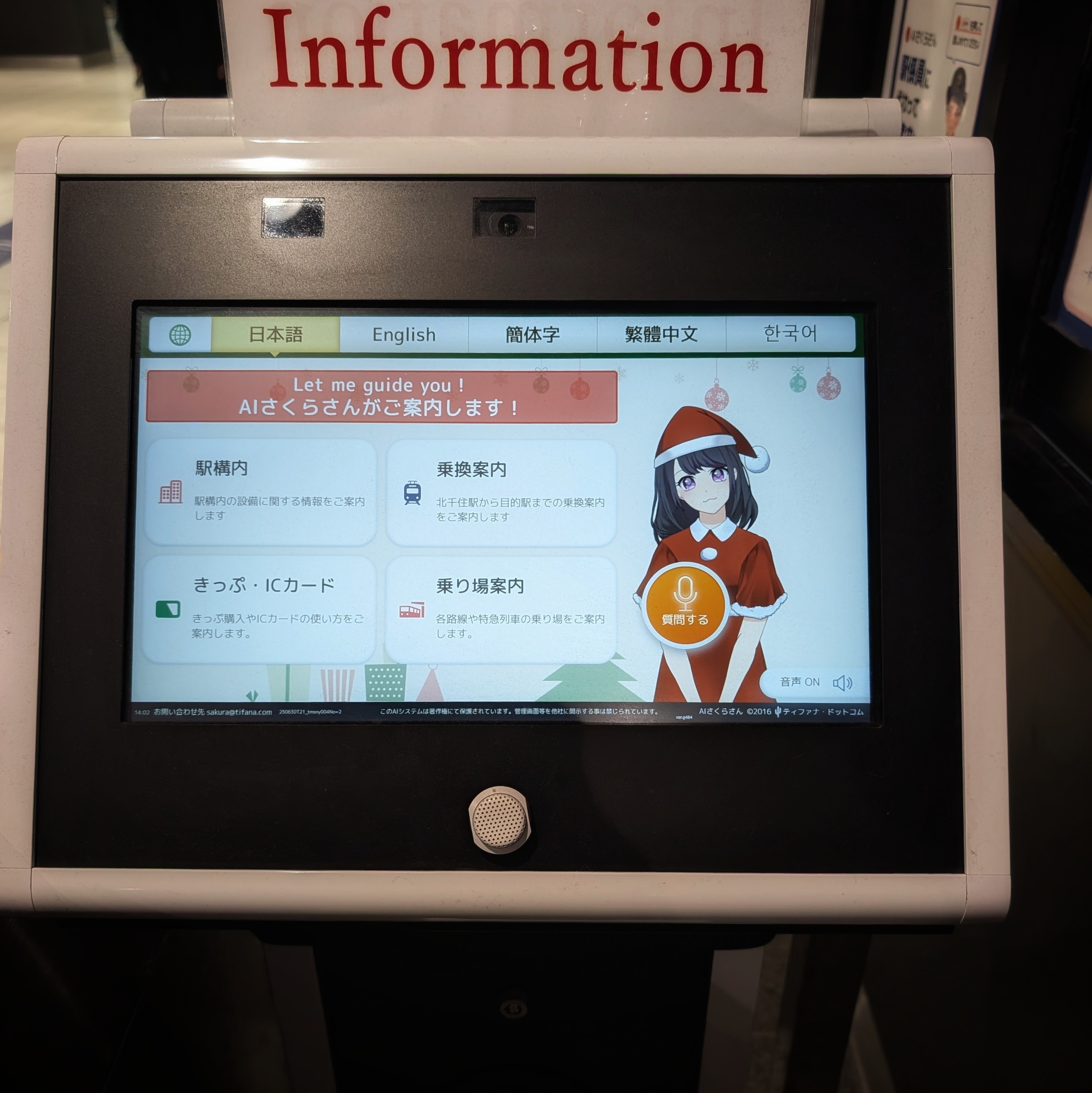 東武北千住駅のAIさくらさんがサンタコスチュームをキメていたので思わず写真を撮ってしまった(メリークリスマス)
