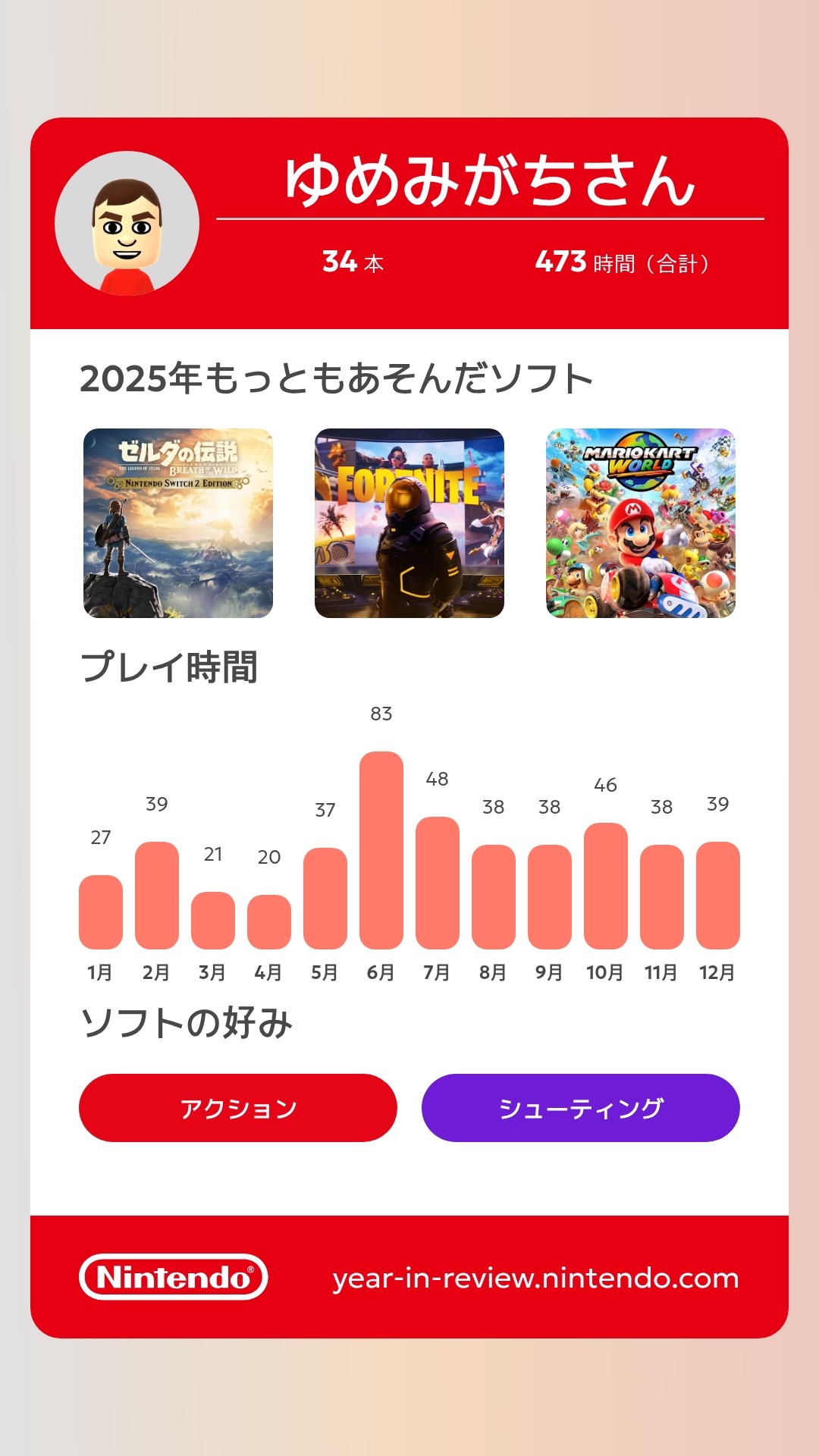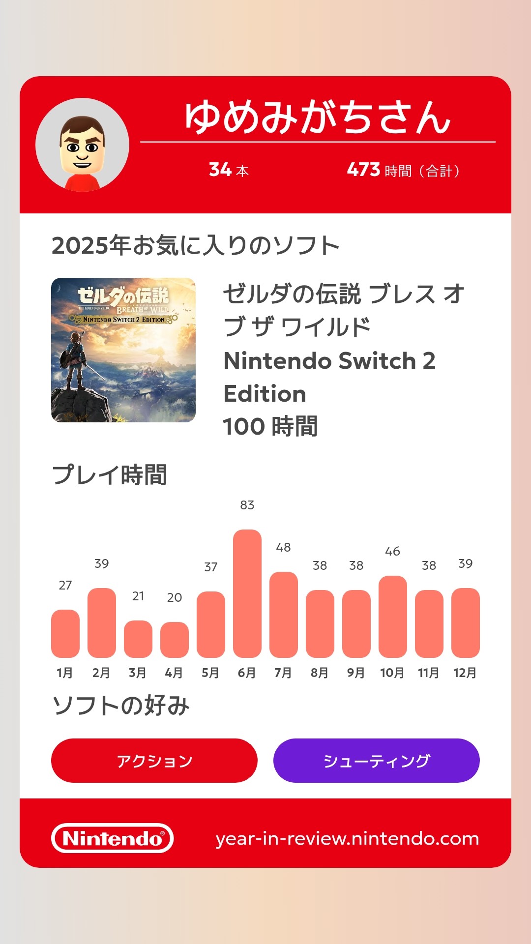 Switchの2025年振り返りを実施。「ブレスオブザワイルドのSwitch2版が出たら遊ぶ」を公言していたので遊ばざるを得なかった #NintendoSwitch2025
