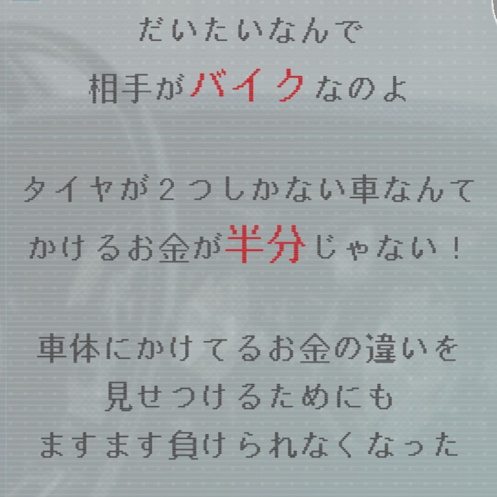 エラーゲームリセットに出てくるテスタロッサの化身・アウトランさんがバイク(ハングオン)相手に無茶なディスりをしているのが良かった。アウトランのストーリーを解放して正解だった