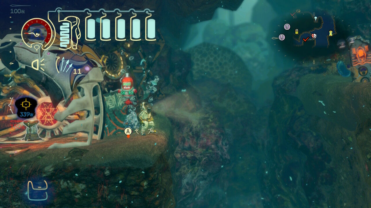 #深世海 #SHINSEKAI #NintendoSwitch セールだったのでスイッチ版「深世海」を購入した。いわゆるメトロイドヴァニアの部類に入るとは思うんだけど、深海で潜水服着た動作がもっさりしたキャラを操作して酸素を求めて海底の洞窟をさまよい歩く様は「スペランカー」に近いと思った #じゃぱねっとゲーム部