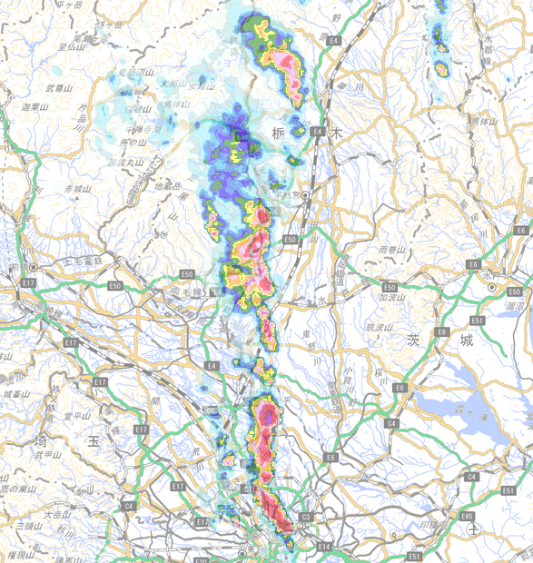 東京から栃木まで帯のように降水域が繋がっていてびっくりしながら寝ます
